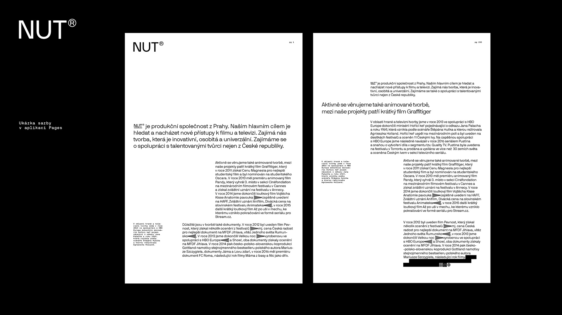 Vizuální podoba několikrát zrevidovaného filmového scénáře, kde jsou důležité pasáže zvýrazněné, podtržené, několikrát přepsané nám přišla natolik nosná že jsme se jí inspirovali v Nut® identitě. Zároveň se nám líbí, že nepřímo říká to, že pro Nut® je dlouhodobá spolupráce a vyhledávání talentovaných scénáristů, důležitou částí procesu.